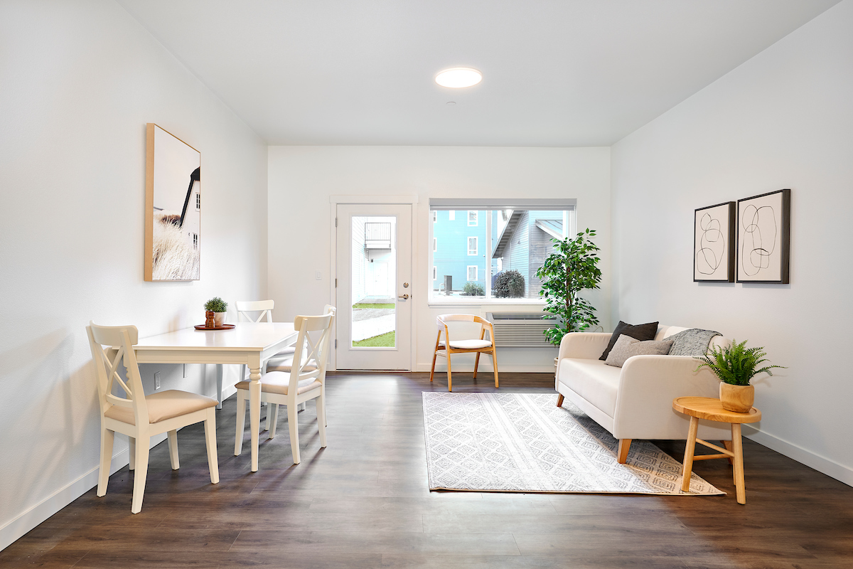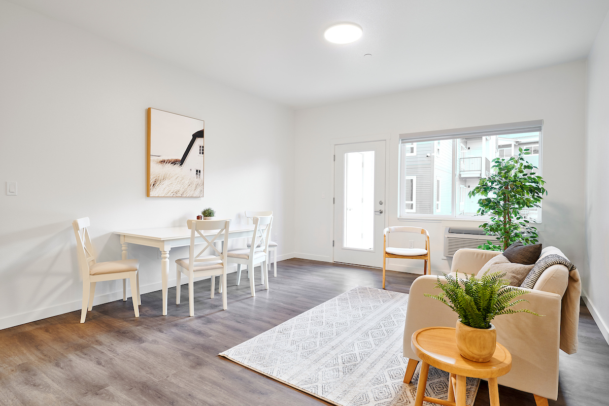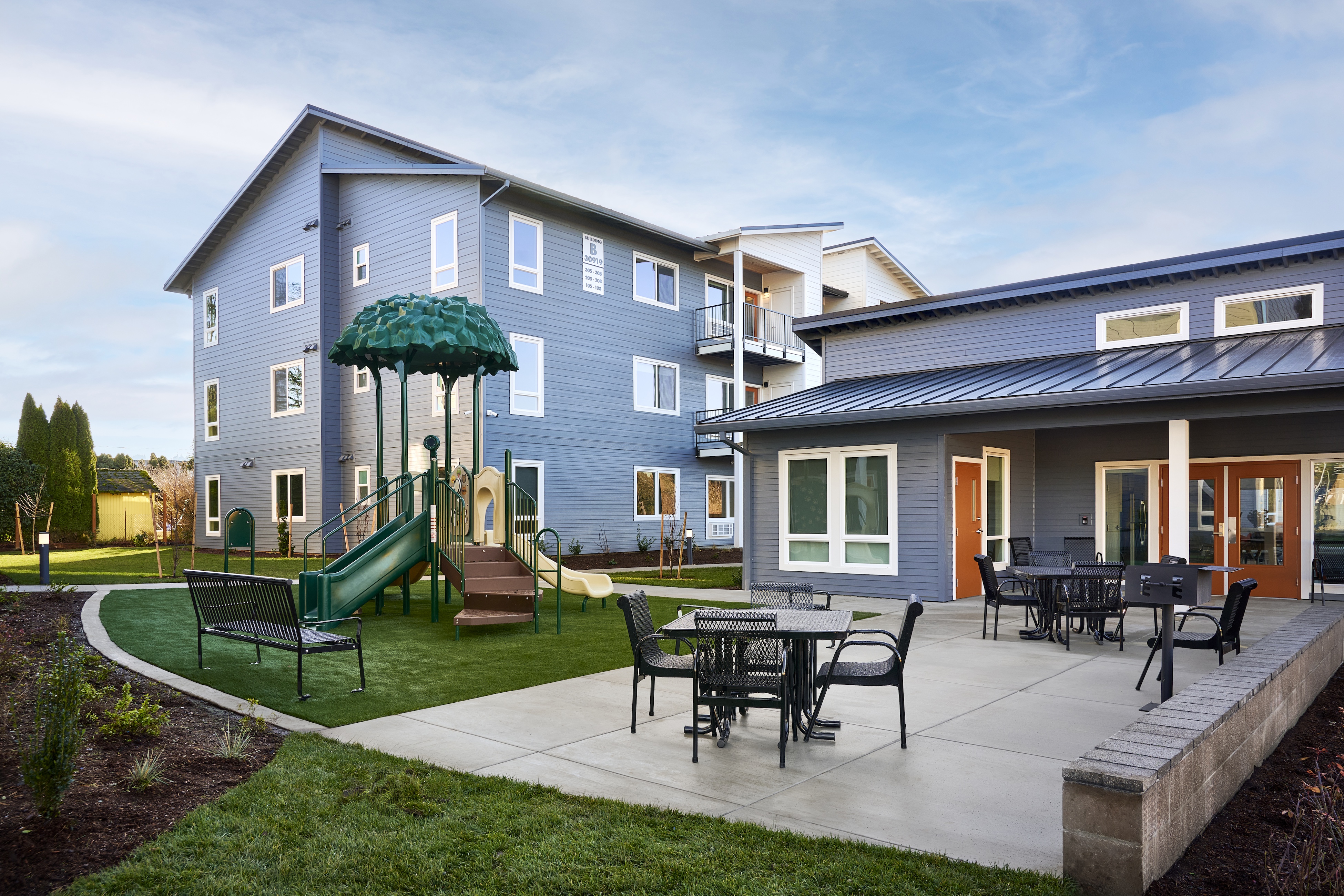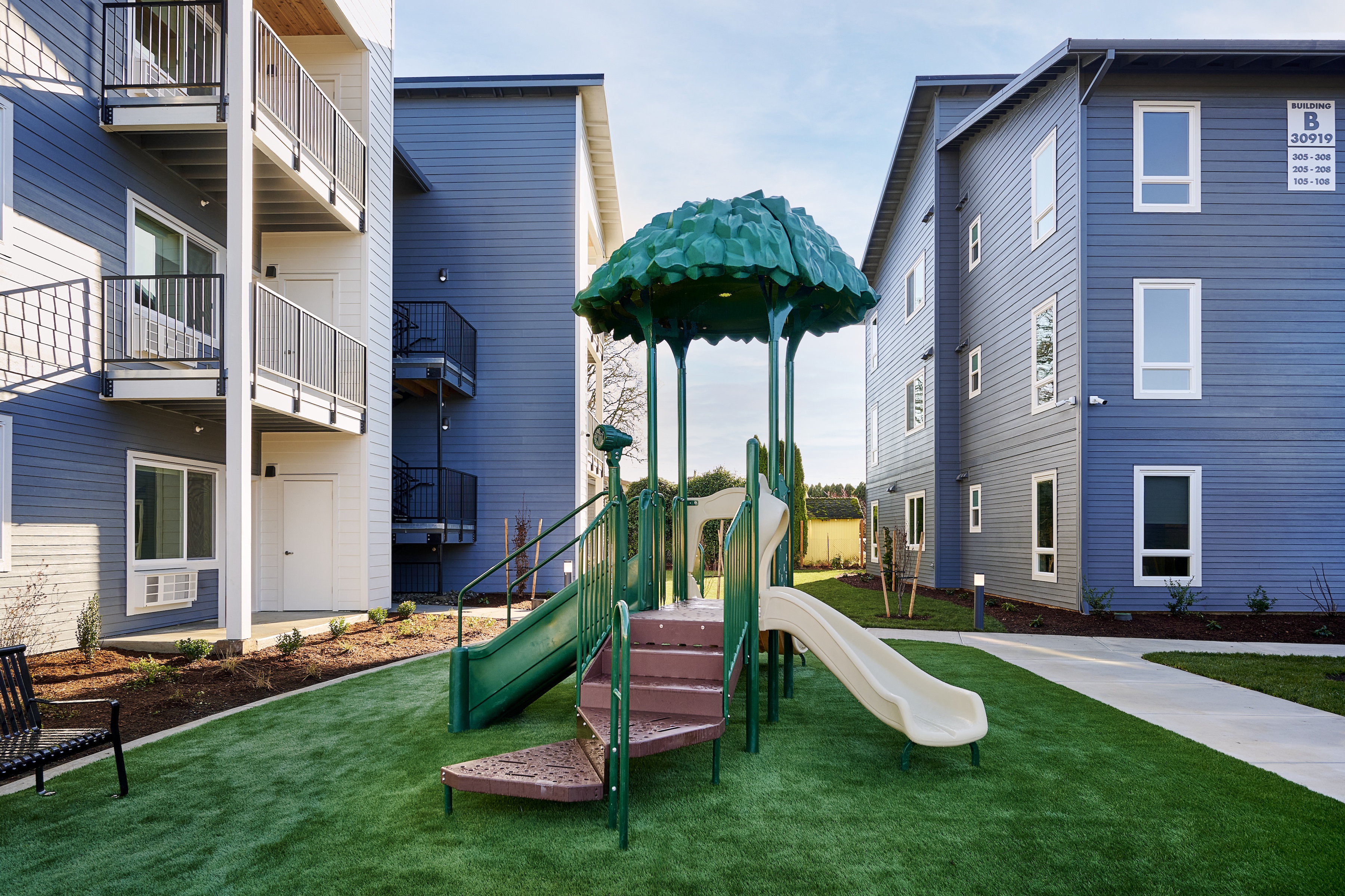 Wade Creek Commons brings 36 units of affordable two and three-bedroom family housing to Estacada, as phase one of a planned multi-phased development project. The development serves families displaced by wildfire and Latino families through a partnership with the local services organization Todos Juntos. Todos Juntos provides residents with access to resources and support in addition to promoting a positive environment for on-site community building.