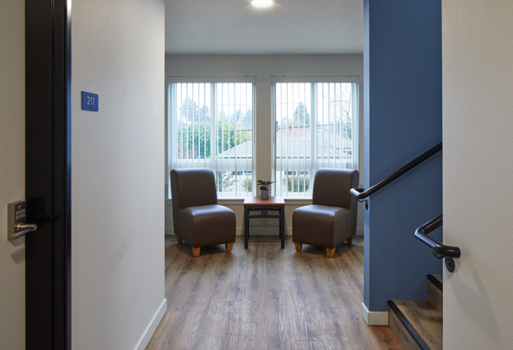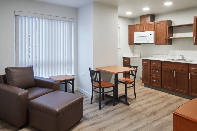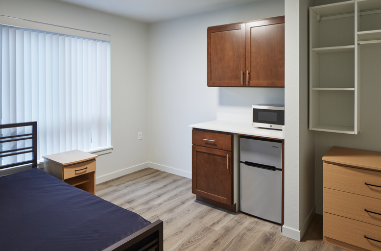 100% of the residents at Findley Commons are formerly houseless Veterans. At Findley Commons, Veteran residents can access a wide variety of supportive housing services provided by Do Good Multnomah caseworkers and VA caseworkers. Veterans are able to rent SRO units for $500/month with all utilities paid for. All 1BR units have property-based vouchers, meaning residents pay no more than 30% of their income on rent.