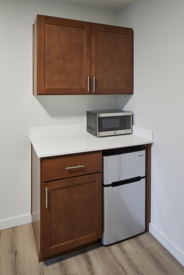 Outdoor furniture, kitchen supplies, and small appliances were donated by area businesses and nonprofits and the church. Closet storage systems were designed and installed at a discount by California Closets of Oregon. The paint was selected from a trauma-informed color palette. Each one bedroom unit has a mini-split air conditioning. All units are fully furnished and residents pay no utility bills. There’s even an elevator, EV stations and a full solar array. Findley Commons is certified Earth Advantage "Gold”, so our carbon footprint is low, just like our utility bills.