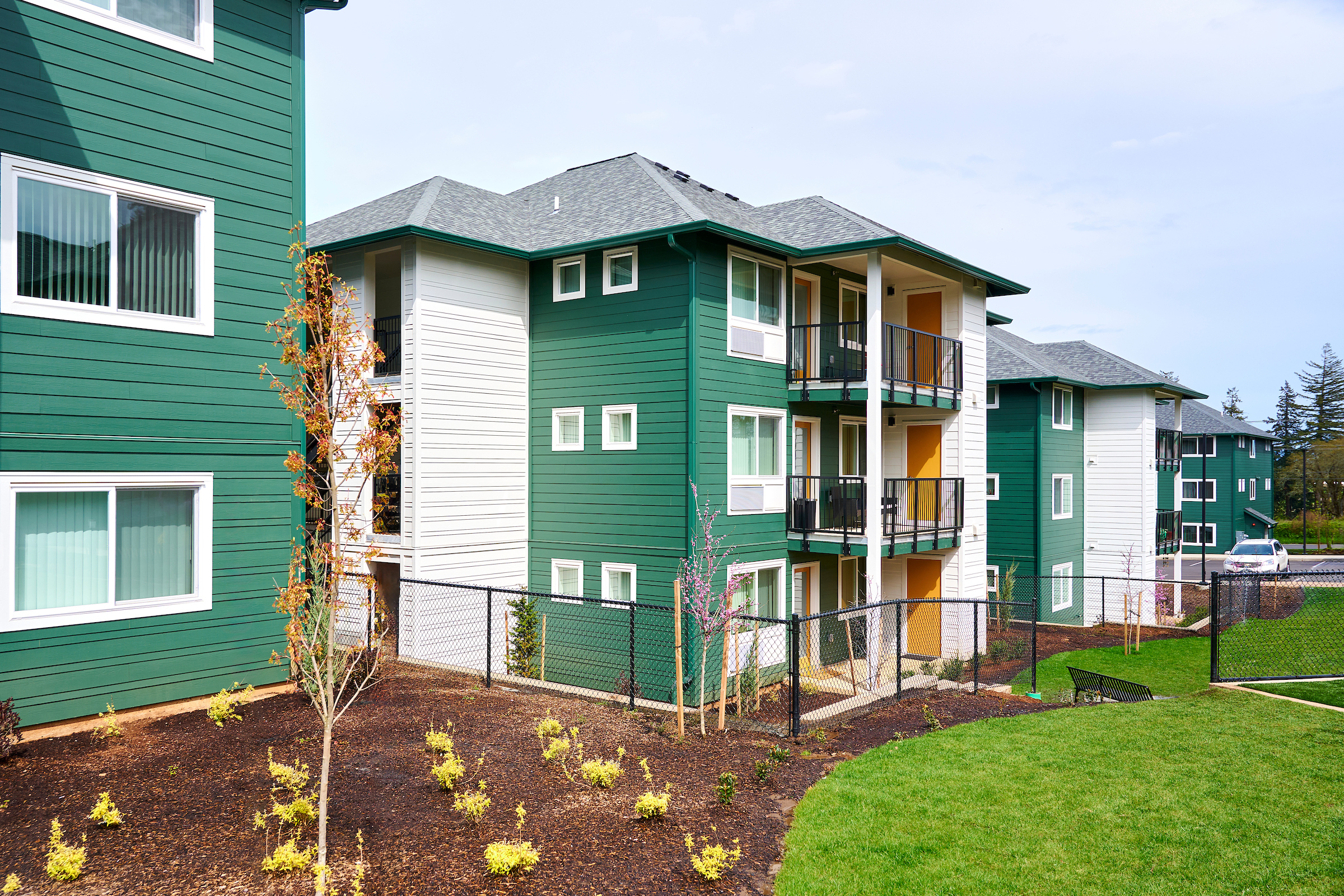 The Grand Fir Apartments bring 96 units of affordable two and three-bedroom family housing to the rapidly developing Morningside Neighborhood in South Salem, Oregon. The Grand Fir serves veterans and Latino families searching for an affordable housing option in Salem and surrounding communities. The local services organization, Mano A Mano, provides residents with access to resources and support in addition to promoting a positive environment for on-site community building.