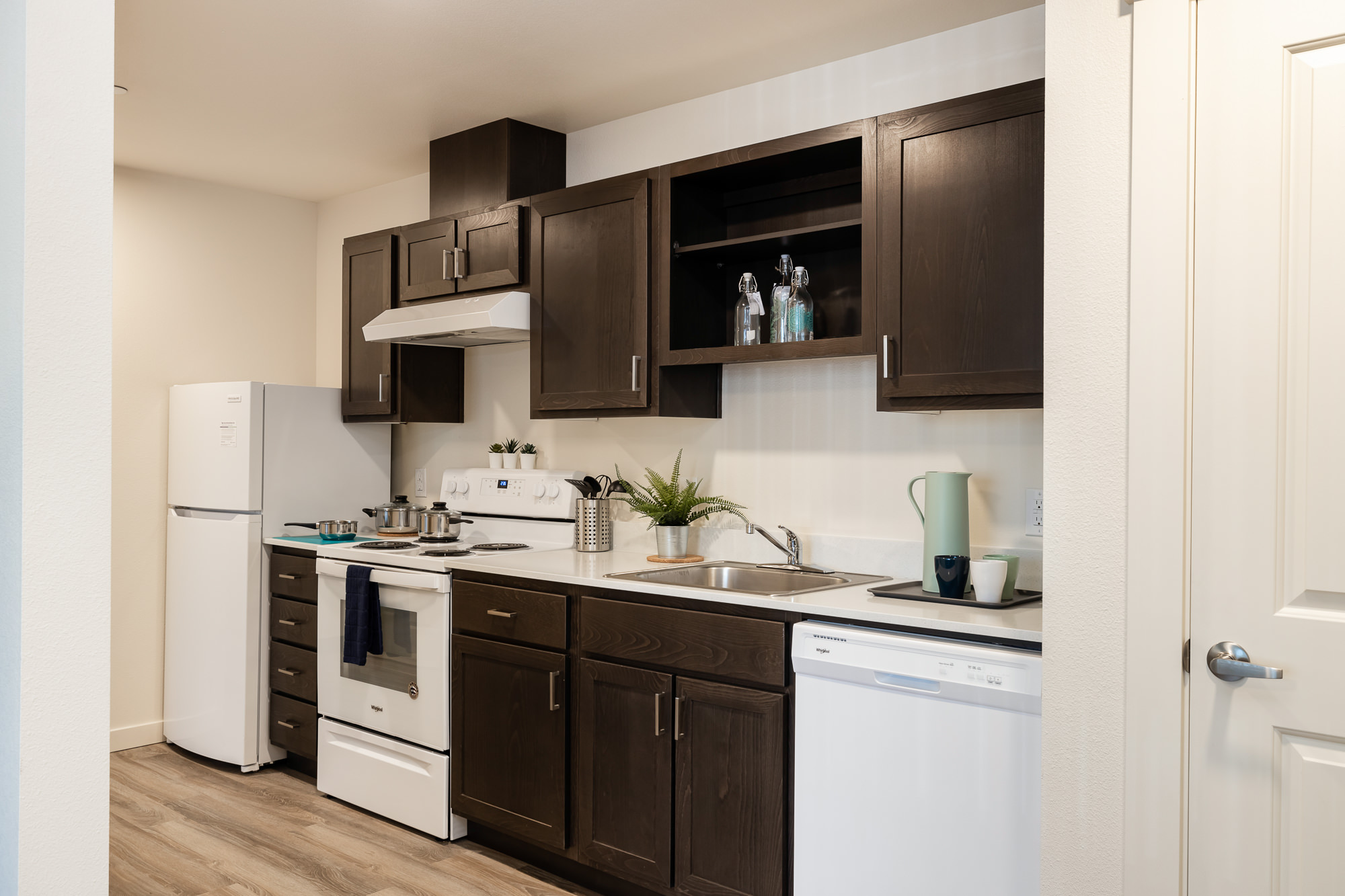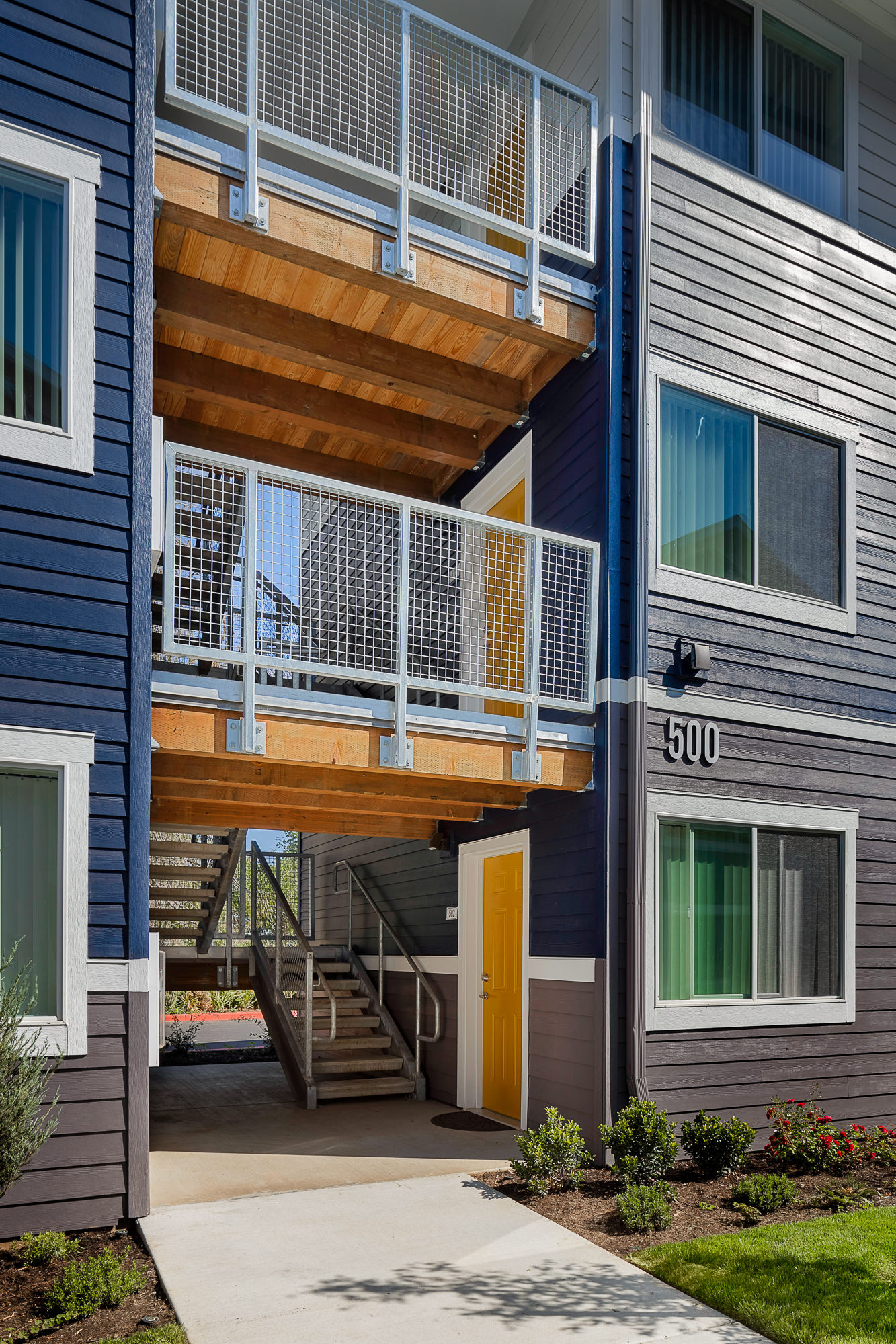 The Juniper and Huckleberry Apartments are a scattered site affordable housing development sponsored by Portland non-profit organization Relay Resources. Between two sites, just blocks from each other, this development brings 104 units of affordable family housing to the Hazelwood neighborhood in SE Portland. Residents benefit from the close proximity to public transportation, including the MAX Blue Line, and other amenities including parks, shopping cents, and entertainment districts.