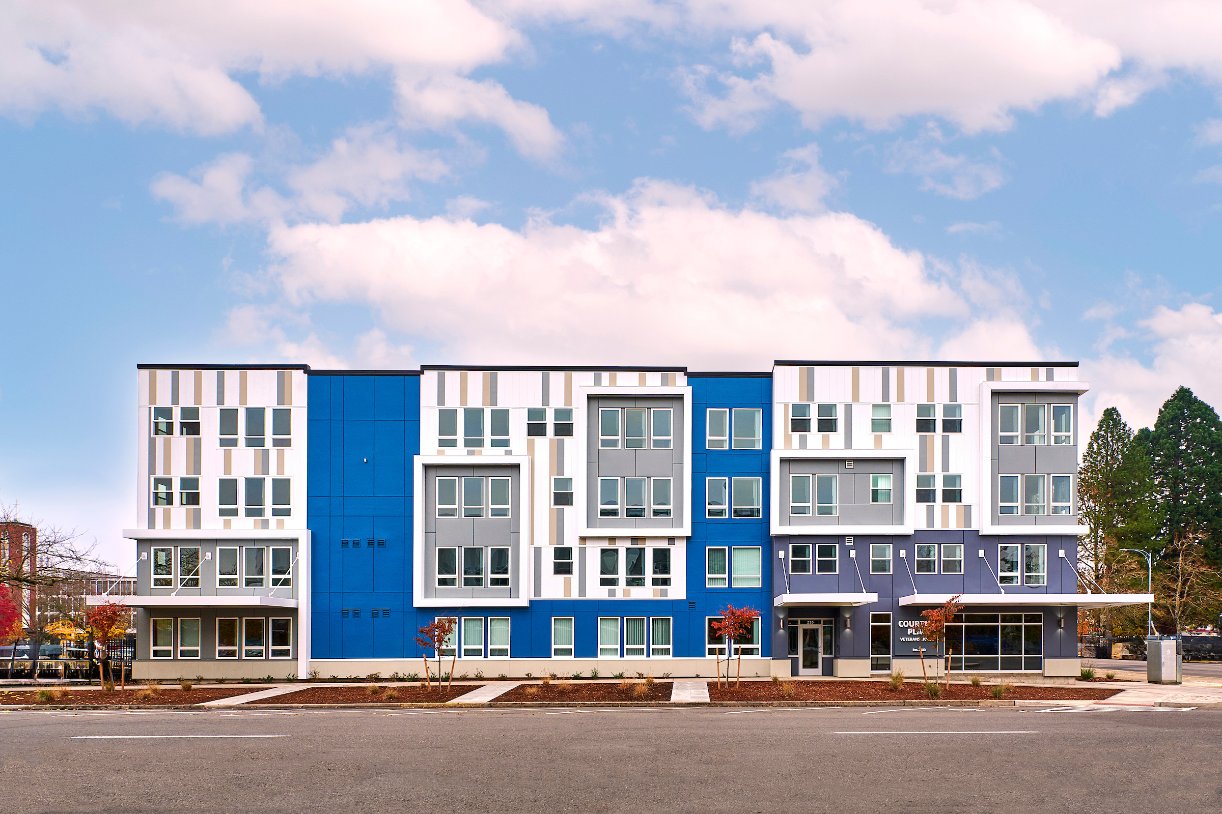 Courtney Plaza is an innovative and collaborative affordable housing development aimed at addressing the needs of homeless and low-income Veterans in Salem through 34 units of high-quality housing in a prime downtown location adjacent to the WWII Memorial and just blocks from the Oregon State Capitol.
